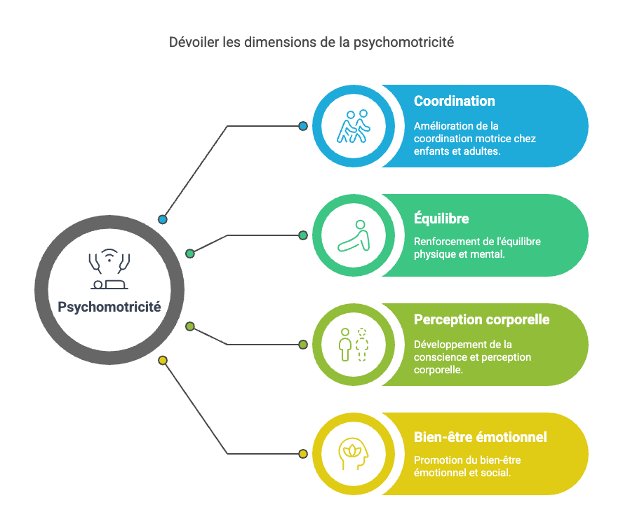 La psychomotricité est une approche qui relie le corps et l’esprit, en tenant compte des aspects psychologiques et moteurs du développement. Les psychomotriciens travaillent avec des enfants et des adultes pour améliorer la coordination, l’équilibre et la perception corporelle, tout en favorisant le bien-être émotionnel et social.